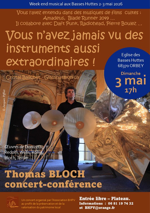 - Dimanche 3 mai : Conférence-concert de Marc Bloch